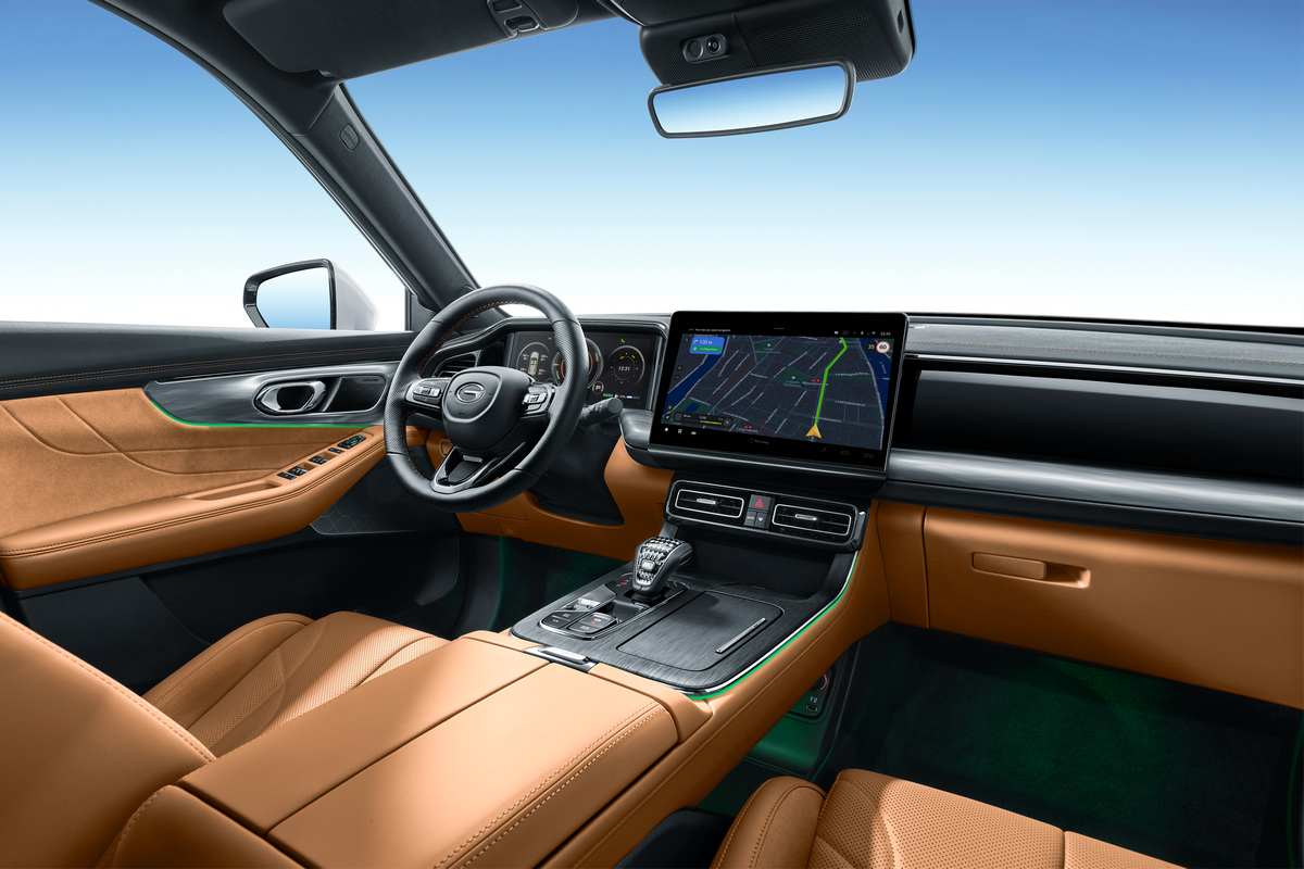 Салон в целом такой же, как у стандартной модели. В списке оборудования гибрида значится полностью русифицированная мультимедийная система с доступом к онлайн-сервисам VK и Яндекса. Кроме того, у мультимедиа есть функция голосового управления: голосом можно настроить «климат», открыть люк, включить подогрев или вентиляцию кресел, обогрев руля и зеркал. Наконец, владельцы смогут управлять настройками дистанционно – через приложение GAC App.