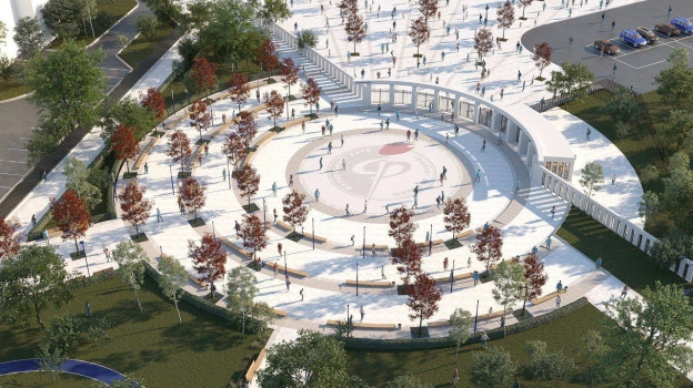 Обновление территории стало возможно благодаря помощи и поддержке губернатора Александра Гусева. Работы планируется провести в несколько этапов. Первый включает в себя прокладку сетей освещения, полива, вертикальную планировку, мощение, установку малых архитектурных форм, а также озеленение при бережном отношении к уже растущим деревьям.