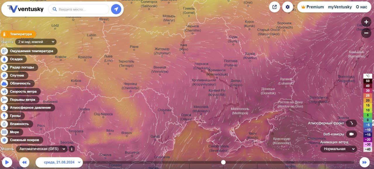 — данные радара погоды Ventusky