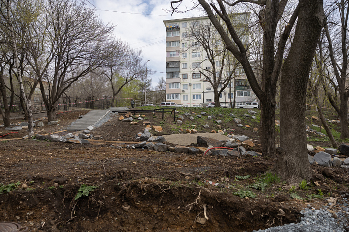 Во Владивостоке благоустраивают три сквера. На Тихой работы идут по графику, на Русской – с опережением, а на Некрасовской – отстают.