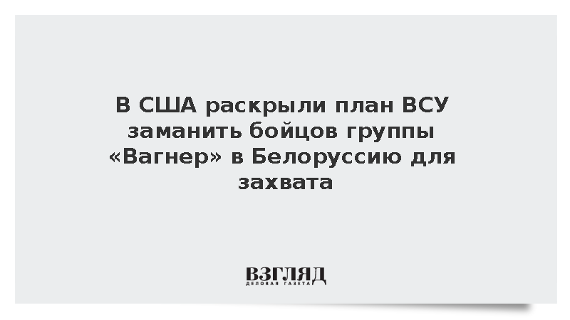 Полковник Вооруженных сил Украины (ВСУ) Роман Червинский в 2020 году курировал план по «заманиванию» бойцов группы «Вагнер» в Белоруссию с целью их захвата и отправки в Киев для предъявления обвинений, заявили источники Washington Post из числа неназваных чиновников на Украине и в Европе.
