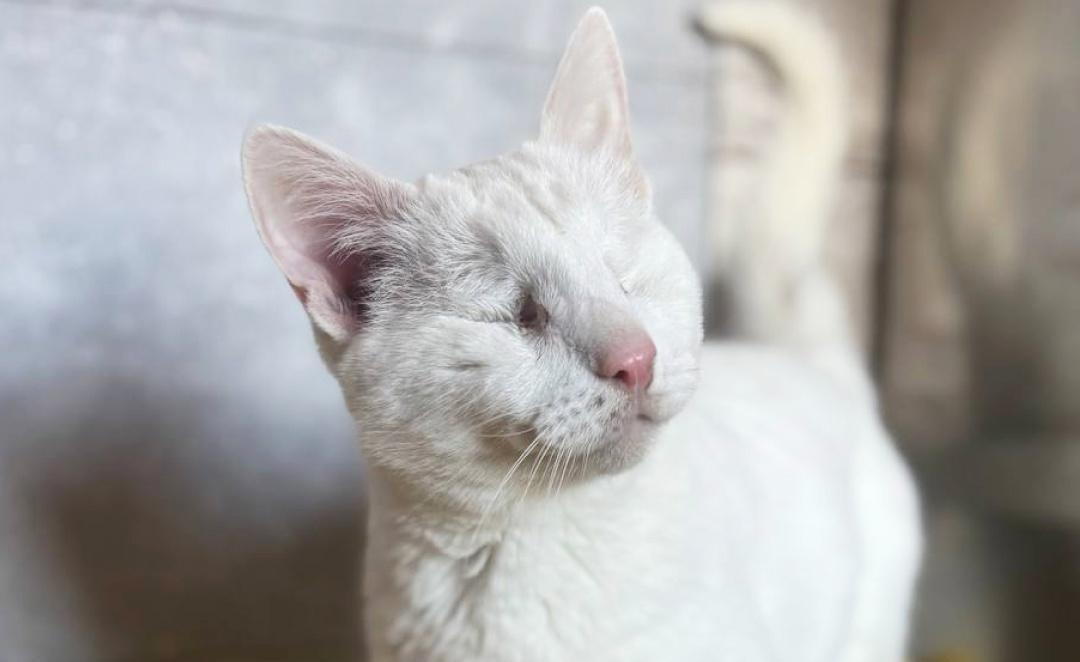 Новосибирские волонтёры ищут дом слепому и глухому коту по имени Беляш. Его бросили в квартире с десятками других животных.