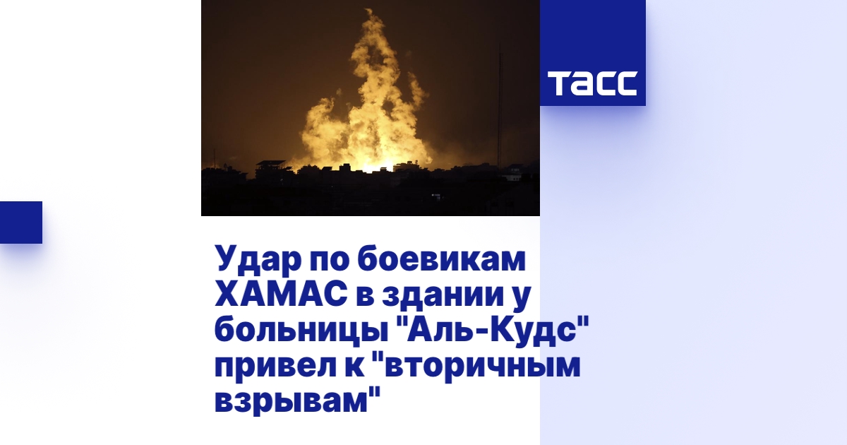 "Подразделения ЦАХАЛ обнаружили несколько террористов ХАМАС, которые забаррикадировались в здании, прилегающем к больнице "Аль-Кудс", и планировали оттуда атаковать военнослужащих. Солдаты направили летательный аппарат для нанесения удара по террористам ХАМАС. Атака привела к сильным вторичным взрывам, которые указывают на наличие склада оружия ХАМАС в гражданском районе", - говорится в сообщении армейской пресс-службы.