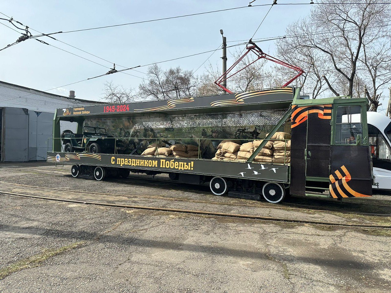 На ней воссоздадут фрагмент окопа, выставят военную технику и вооружение. Трамвай будет курсировать по маршруту №5 «Энергетики – Предмостная площадь».