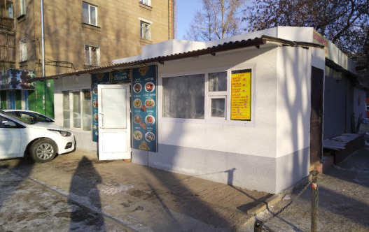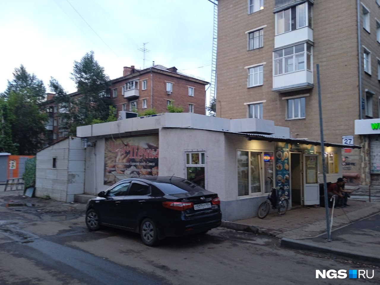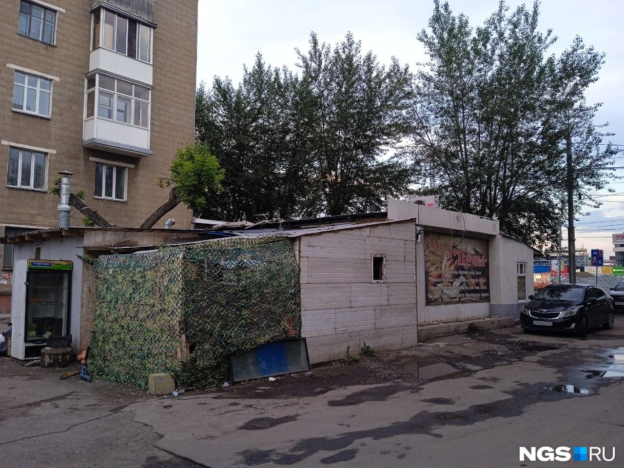 Если изначально это был типовой павильон с входом в эркере, каких немало в Новосибирске, то потом к нему добавился обширный лоток для фруктов, затем — навес над ним, а позже перенесли и стены, превратив стеклянный павильон в белую коробочку с небольшими окошками.