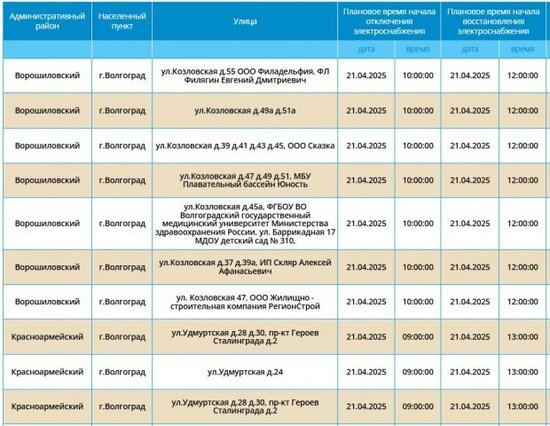 В Волгограде 21 апреля стартует массовое отключение электроэнергии