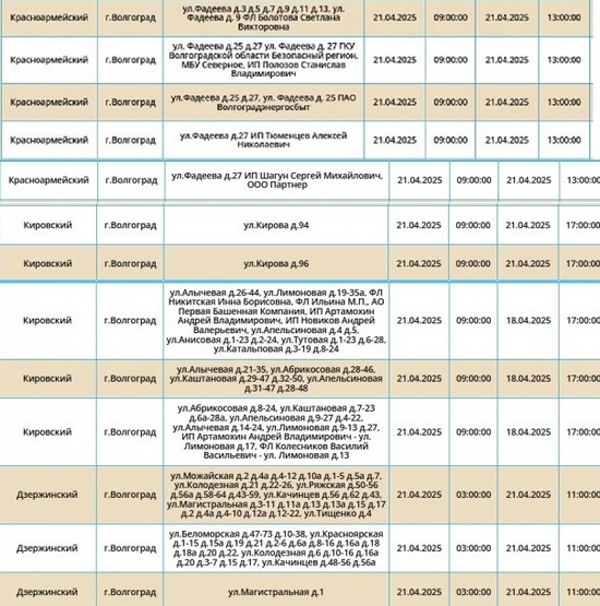 В первый день новой недели, 21 апреля, в Ворошиловском, Кировском, Дзержинском и Красноармейском районах Волгограда будут проводиться плановые профилактические работы на электросетях. В связи с этим в перечисленных районах временно не будет света.