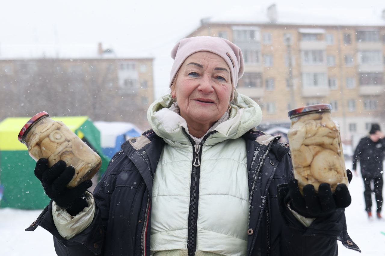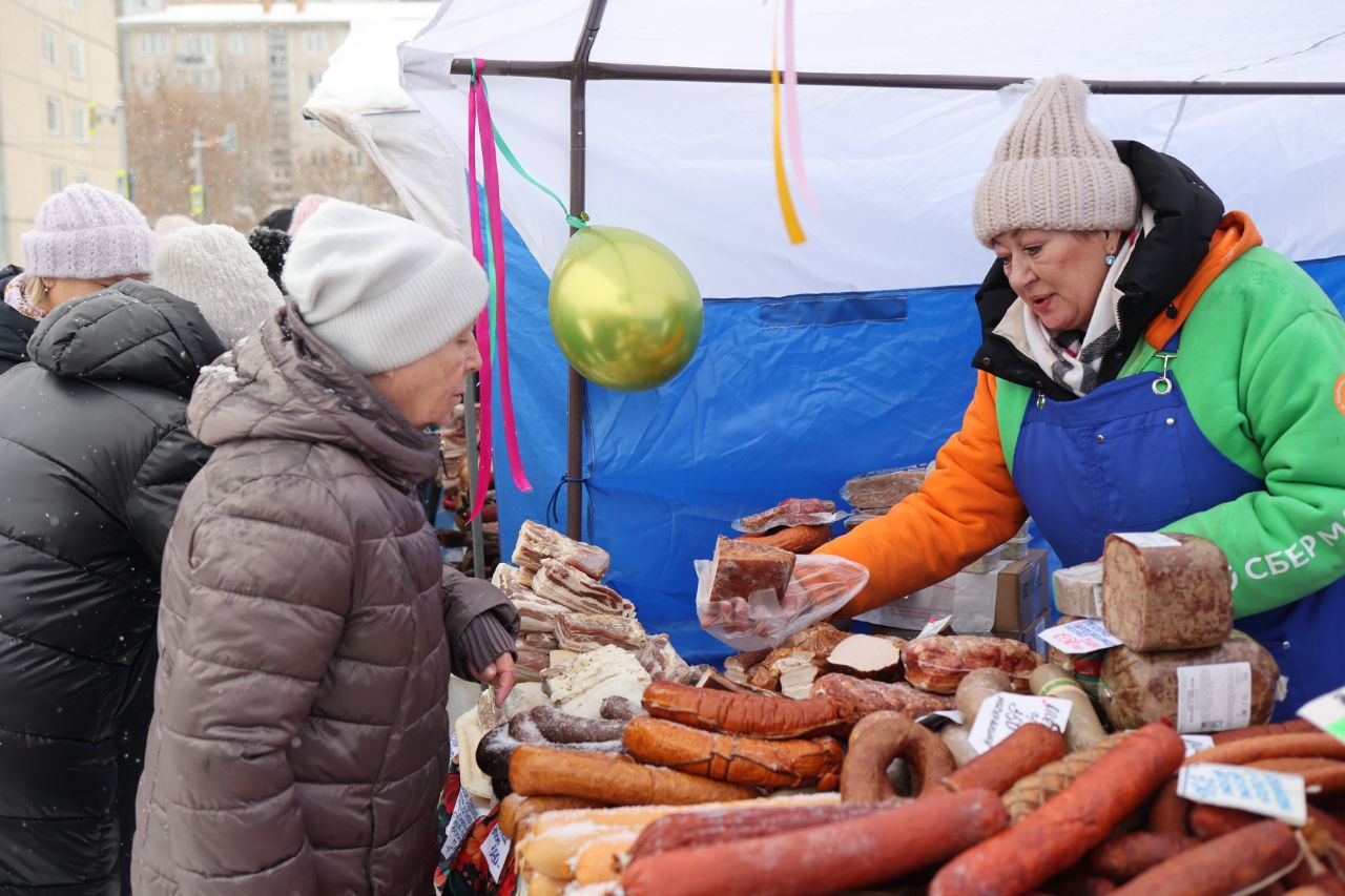Прилавки развернулись в сквере Серебряном. Мясо, рыбу, колбасы, молоко, сладости и травяные сборы представляют более 50 производителей со всего края. Разогревает покупателей в этот снежный день праздничный концерт. Ярмарка работает до 16:00.