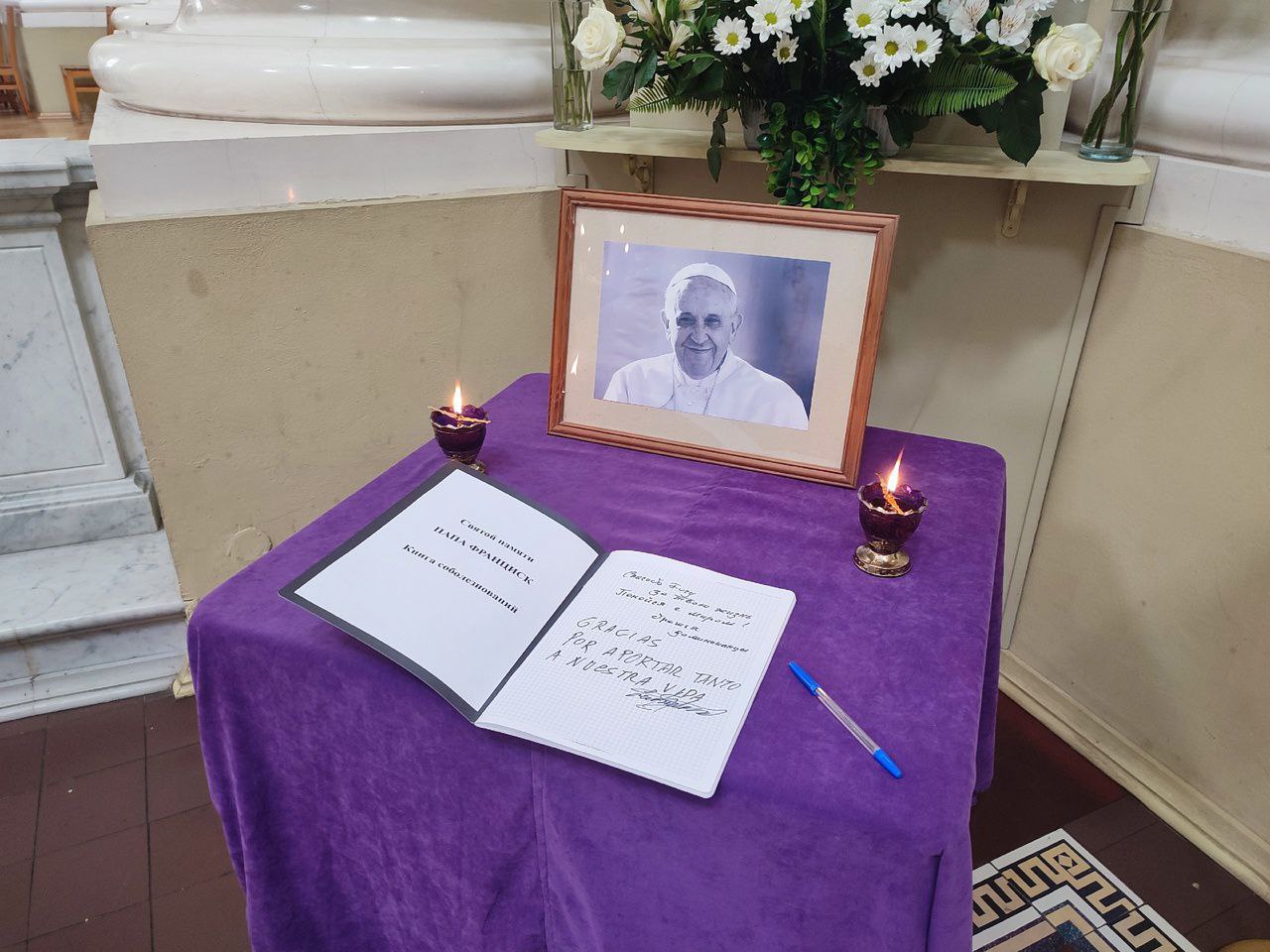 В католических приходах в Москве и Петербурге после кончины Папы Франциска открыли книги соболезнований.
