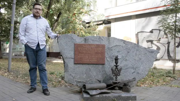 Прогулка стартовала от главного корпуса Воронежского госуниверситета. А точнее от университетского парка, в котором установлен памятник преподавателям и студентам, павшим в боях за Родину в 1941–1945 годах. Начало было очень символичным. Во-первых, сам монумент относится к теме прогулки. Во-вторых, деятельность Никиты Шершова долгое время была связана с Великой Отечественной войной. В-третьих, молодой педагог учился в ВГУ и не раз бывал в парке.