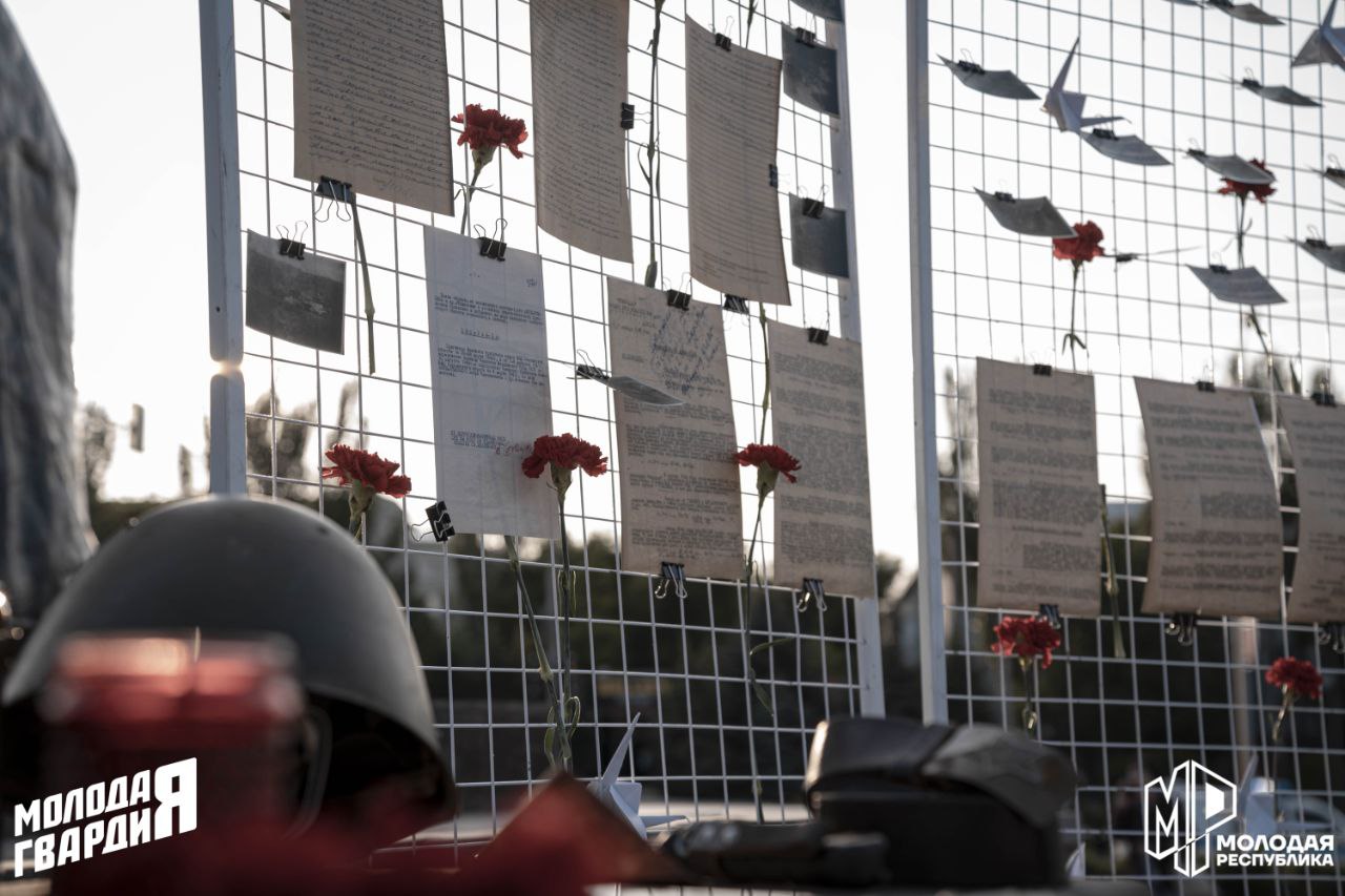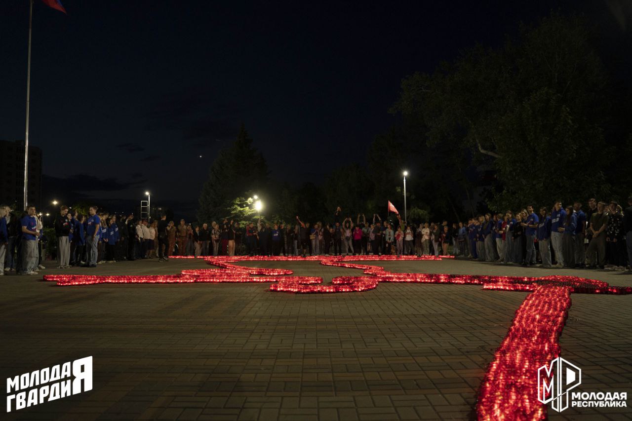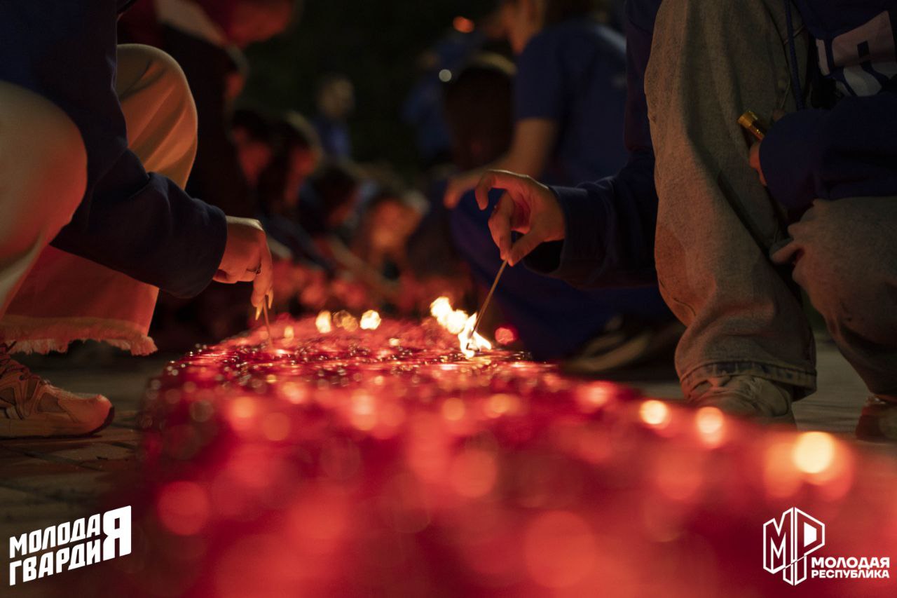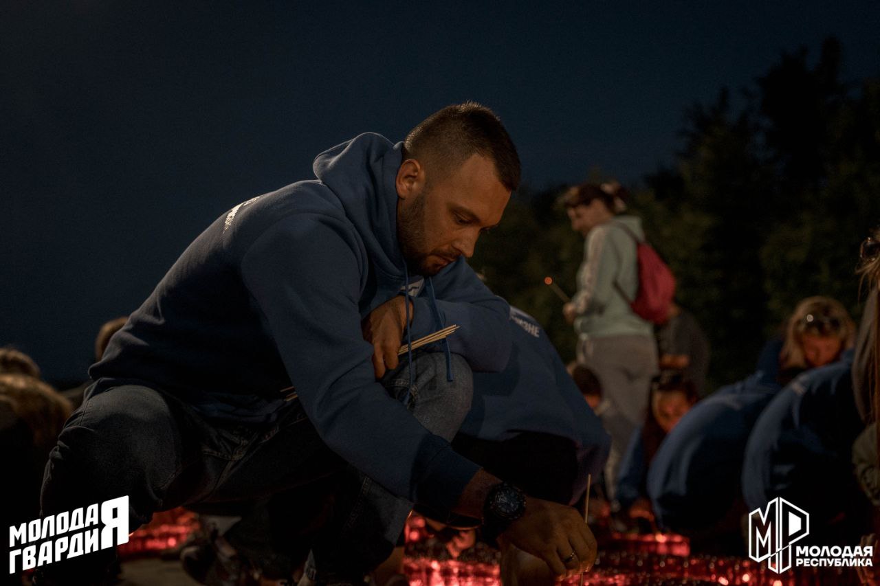 Активисты Молодёжки и других организаций составили из лампад изображение с надписью «Они стояли за Родину насмерть» и зажгли огонь в память о тех, кто отдал свои жизни в Великой Отечественной войне.