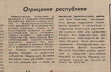 При этом федеральная пресса в те дни назвала принятие Конституции Уральской республики громом среди ясного неба для московских властей.