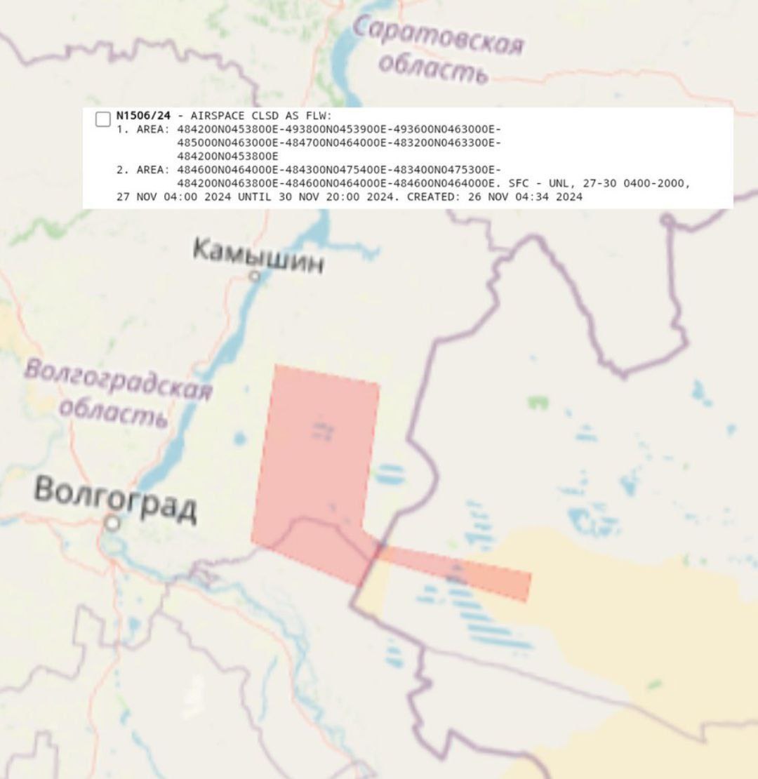 ⚡️Россия закрывает участок воздушного пространства над ракетным полигоном Капустин Яр в Астраханской области до 30 ноября. По предварительной информации, именно отсюда был произведен пуск ракеты "Орешник" по объектам ВПК Украины в Днепропетровске. #Россия @new_militarycolumnist