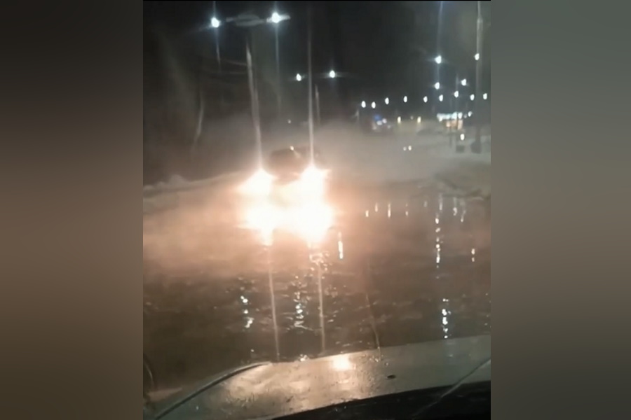 Автомобилистам приходится буквально плыть по дороге, превращая свои машины в лодки. По словам новомосковцев, в аварийной службе им пояснили, что это утечка холодной воды, а пар появился из-за холода на улицах.