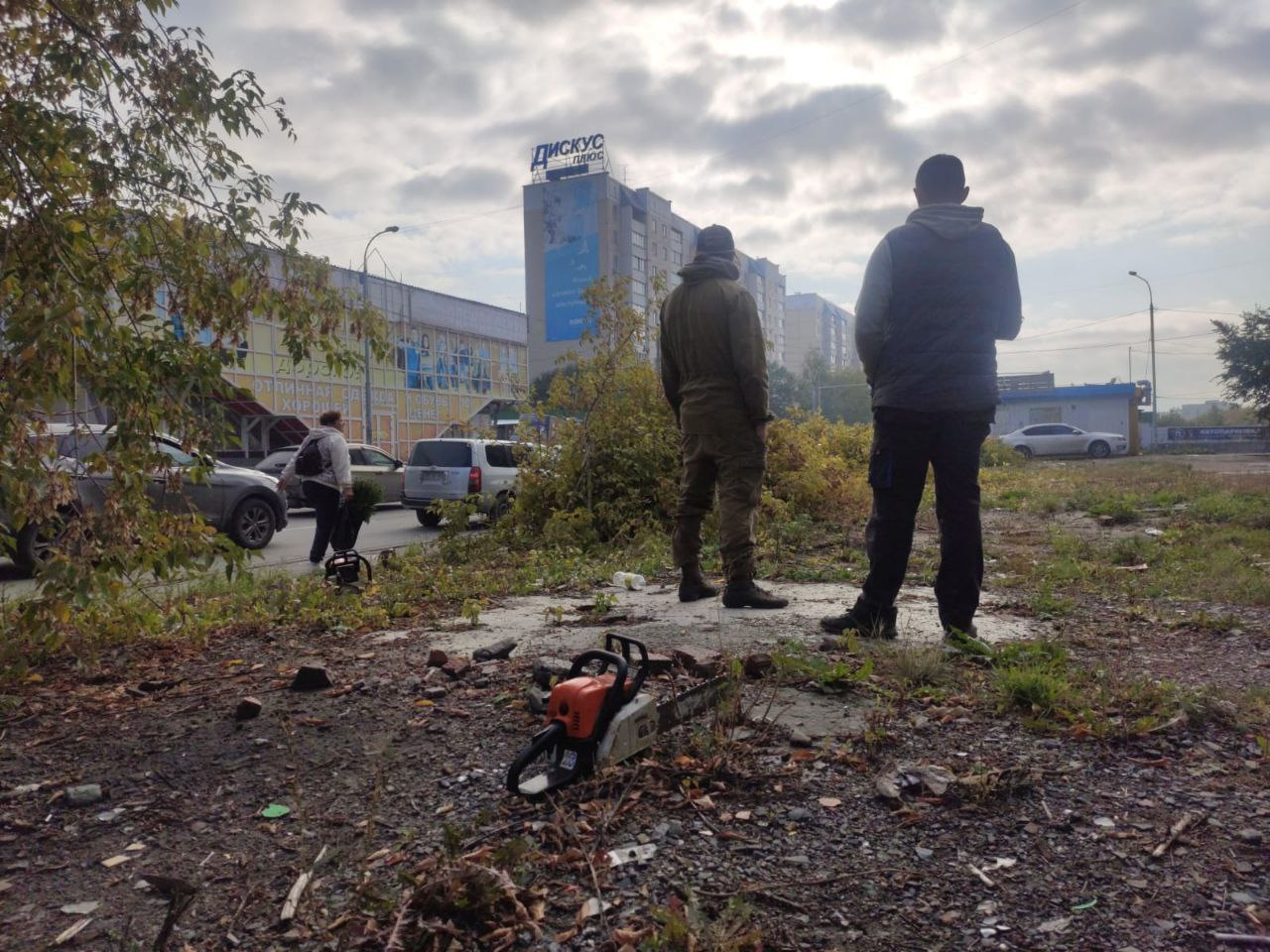 В Новосибирске сегодня, 30 сентября, на улицу Высоцкого приехали рабочие и начали пилить деревья на территории, за которую уже несколько лет идет борьба жителей.