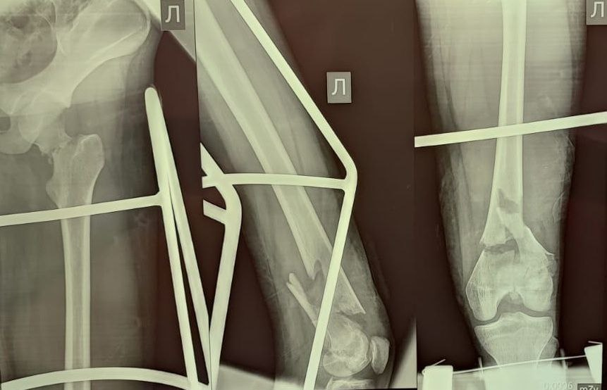 — Здесь беда была в чем. Шейка бедра была сломана — а это то, за счет чего мы вообще опору даем и благодаря чему есть движение в тазобедренном суставе. Плюс оскольчатый перелом был в дистальном отделе, где коленный сустав. Было большое количество отломков, нужно было всё застабилизировать. Был риск несращения, так как идет размозжение тканей вокруг. Был велик риск асептического некроза — когда кости не приживаются, — цитирует Минздрав Омской области врача — травматолога-ортопеда Максима Перфилова.