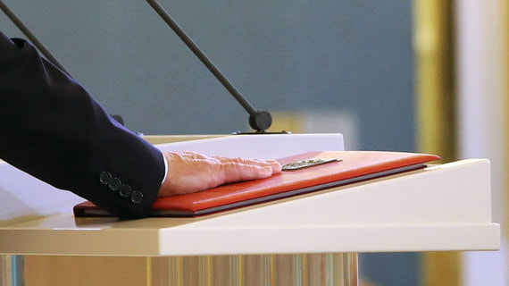 Далее председатель Конституционного суда сообщит вновь избранному президенту об официальном вступлении в должность, вручив ему штандарт и знак президента. В зале прозвучит гимн России, а штандарт поднимут над Кремлем.