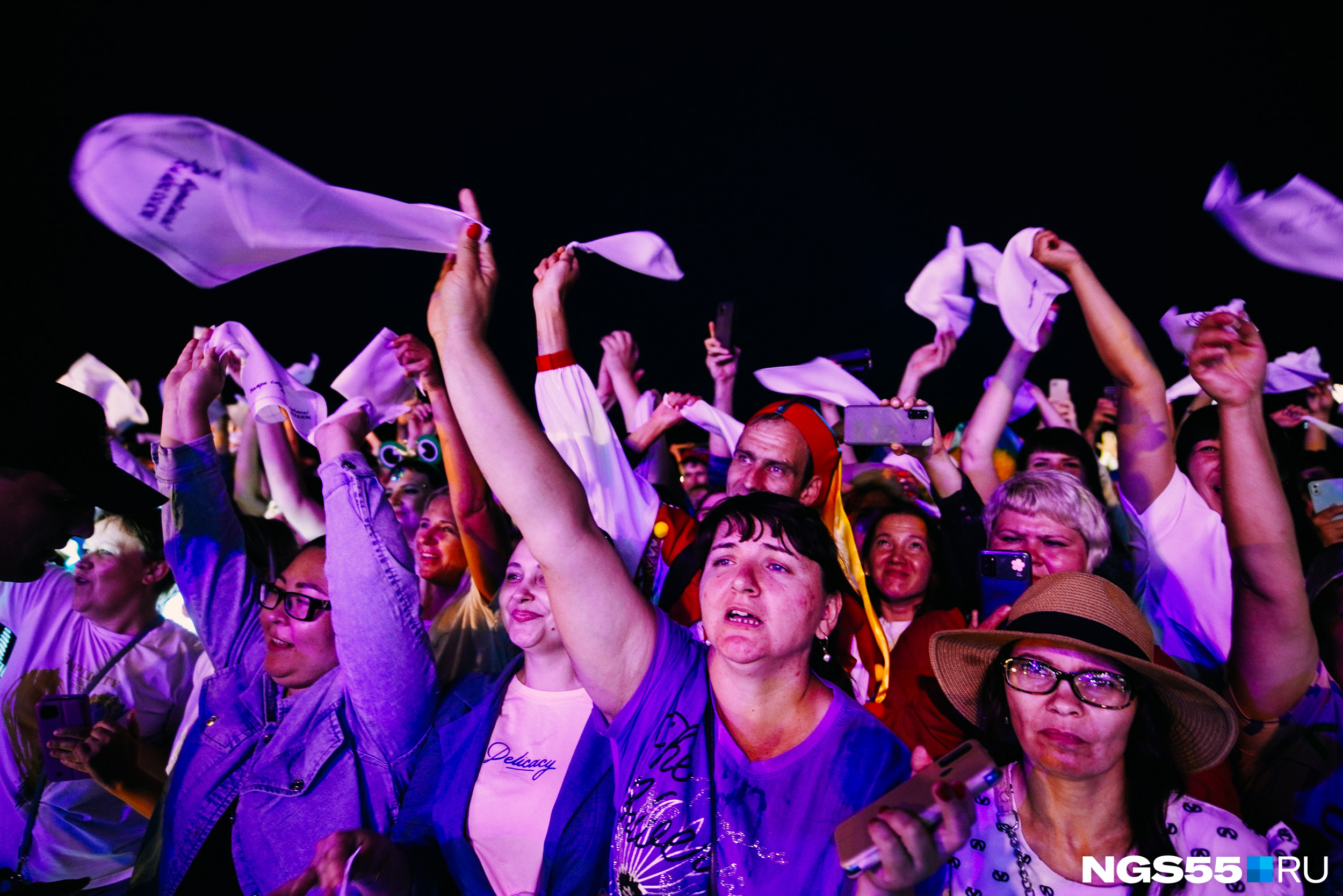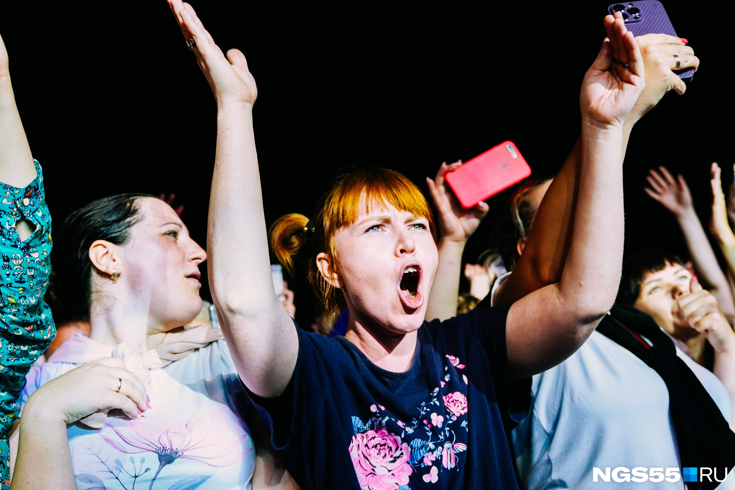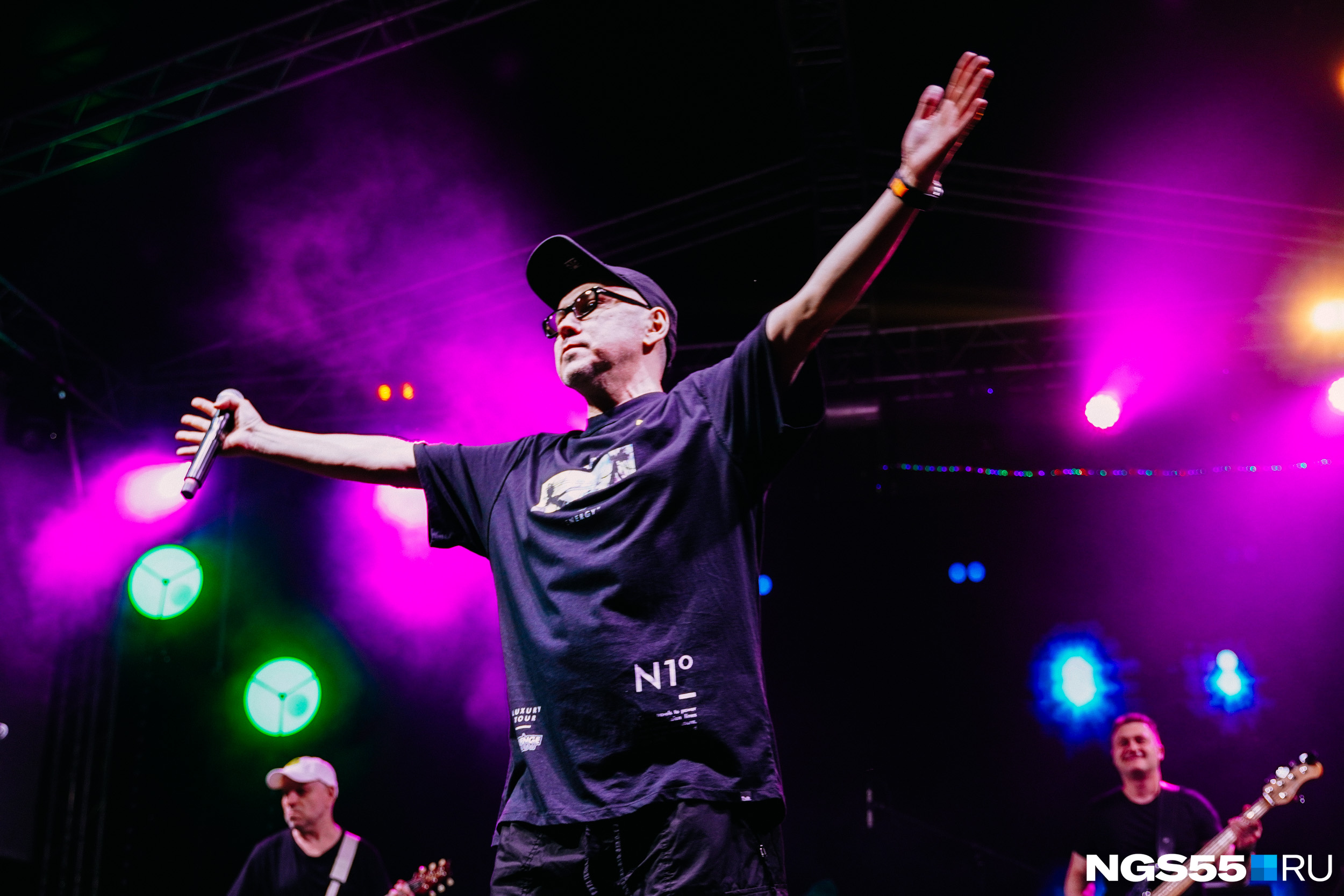 Несколько разгоряченных весельем омичей поднялись на сцену, чтобы исполнить хиты вместе с солистом группы Валерием Жуковым