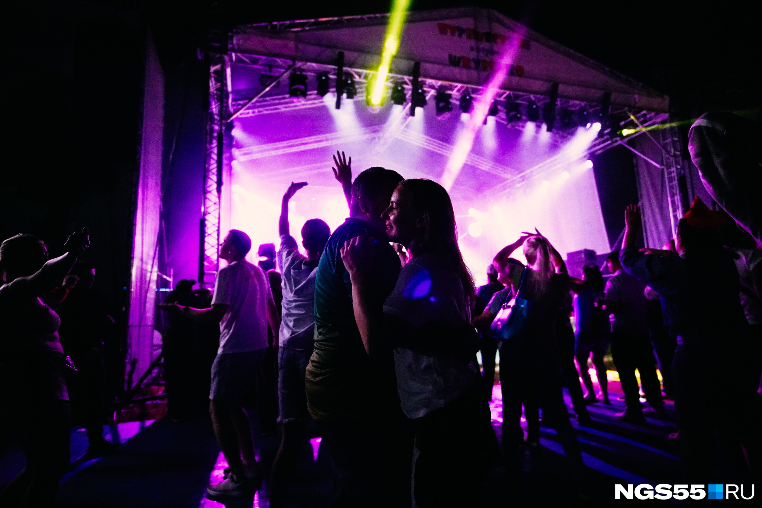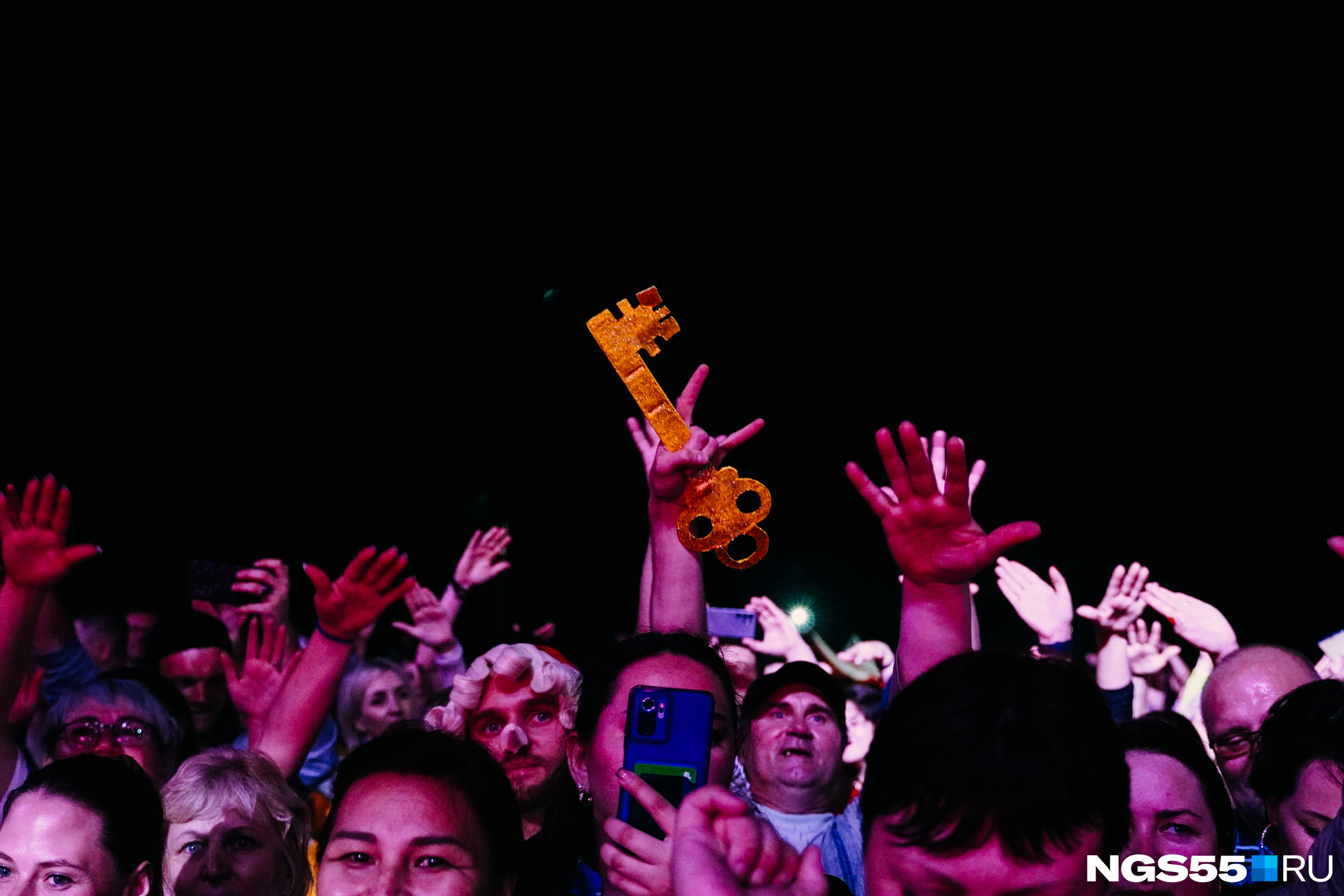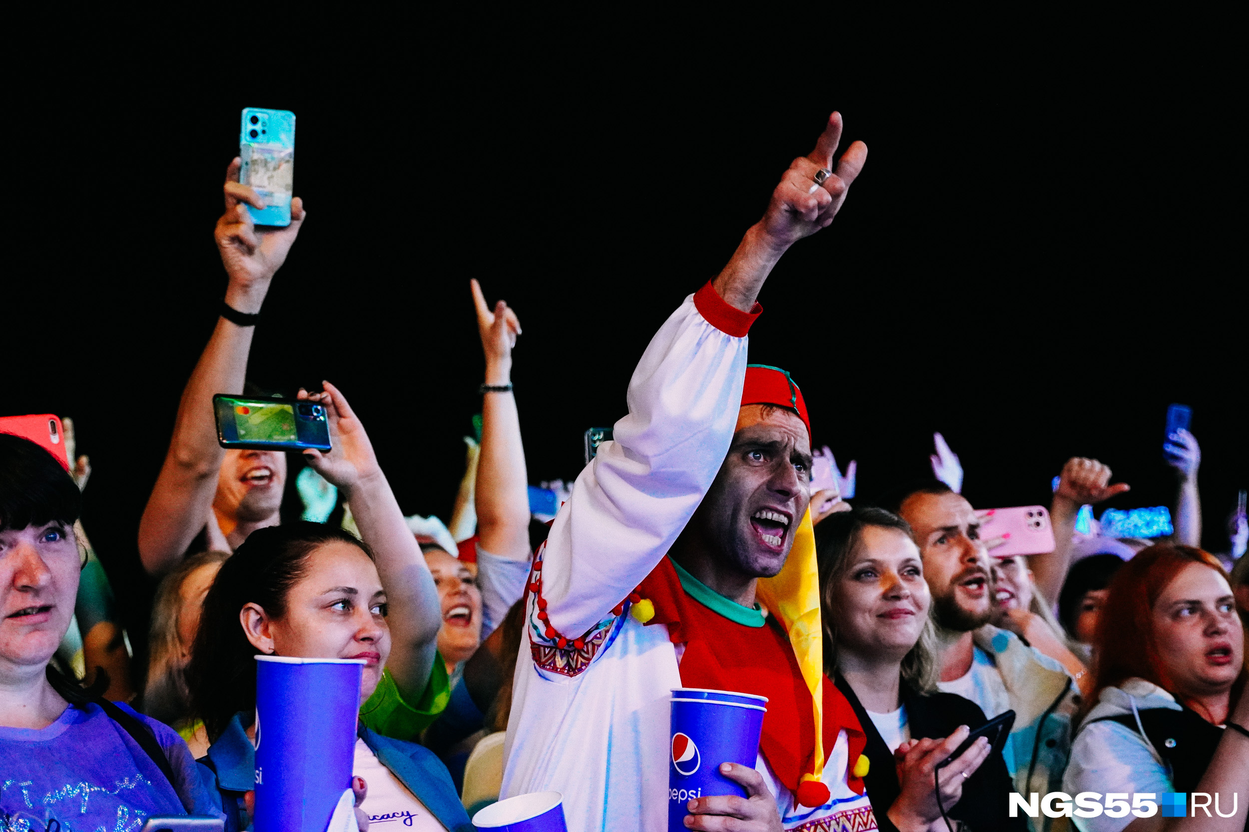 Несколько разгоряченных весельем омичей поднялись на сцену, чтобы исполнить хиты вместе с солистом группы Валерием Жуковым