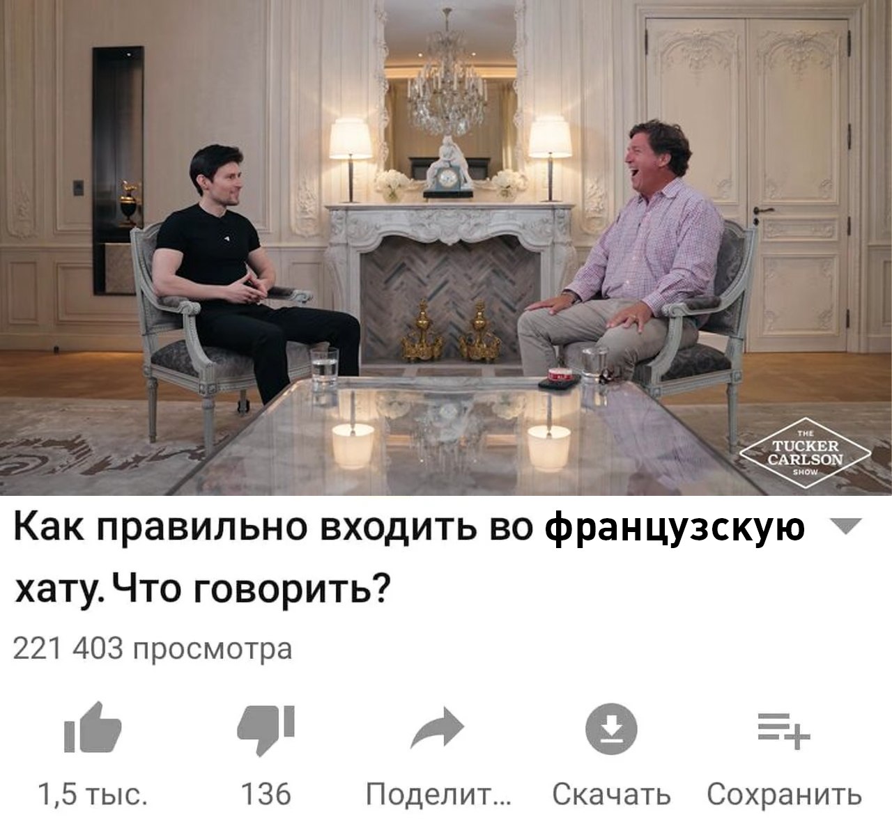 Дуров дал интервью Такеру Карлсону, в котором рассказал о задержании, французской тюрьме и даже советском мороженом.