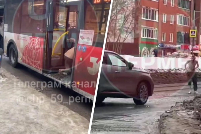 Днем 2 февраля пермяки стали свидетелями странной ситуации. На остановке из открытых дверей автобуса № 16 чуть ли не вывалился полуголый мужчина. Следом выскочили напуганные люди.