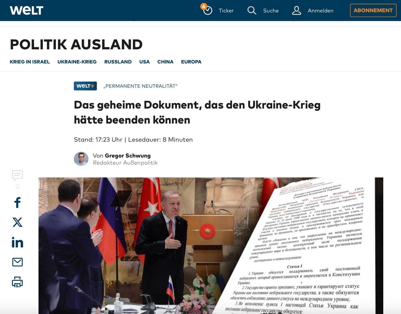 📃 Документ, который мог завершить войну в Украине, опубликовало издание WELT