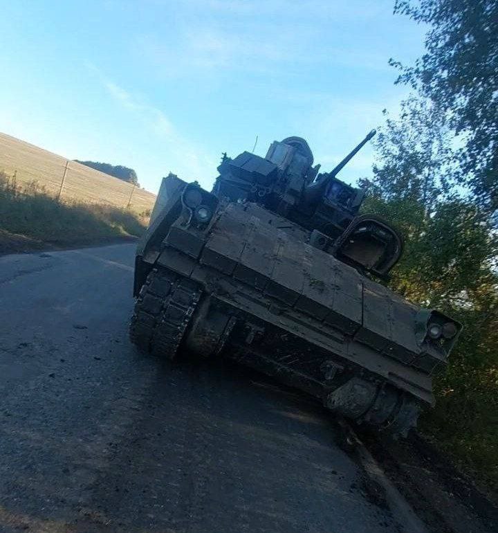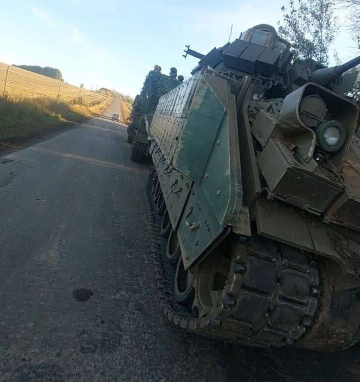 Бойцы 106-й гв. ВДД тянут в тыл украинскую БМП Bradley, Курская область.