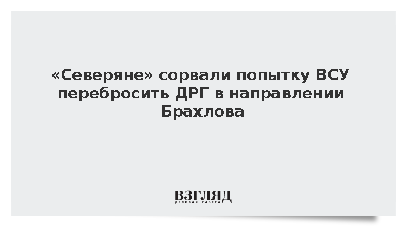 «Вражеская диверсионная группа двигалась в направлении Брахлова и вскрыта средствами разведки «Северян». В результате комплексного огневого поражения противник понес потери в живой силе (до восьми человек) и отступил на исходные позиции», – сообщил связанный с группировкой «Север» Telegram-канал «Северный Ветер».