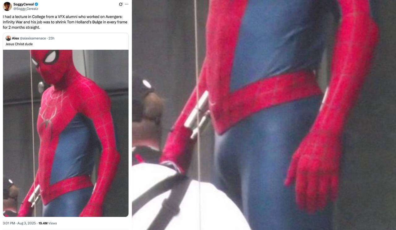 Член Человека-паука ретушируют в каждом кадре — VFX-художник пожаловался на свою работу в X.