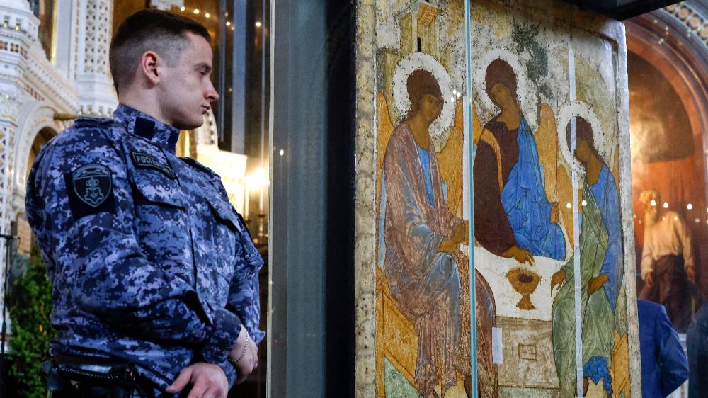 Ранее Минкульт сообщил о продлении срока хранения "Троицы" в храме Христа Спасителя до 19 июля. Затем её отправят на плановую реставрацию, а после передадут Троице-Сергиевой лавре. Сейчас святыне ежедневно приходят поклониться не менее восьми тысяч верующих.