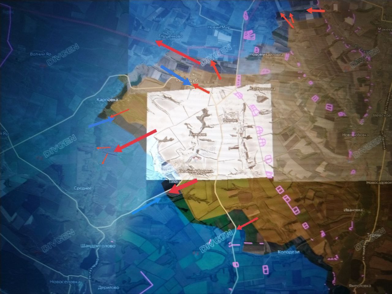 Противнику удалось потеснить наших закрепов в Редкодубе в западной и центральной частях, а также в южной части Карповки.