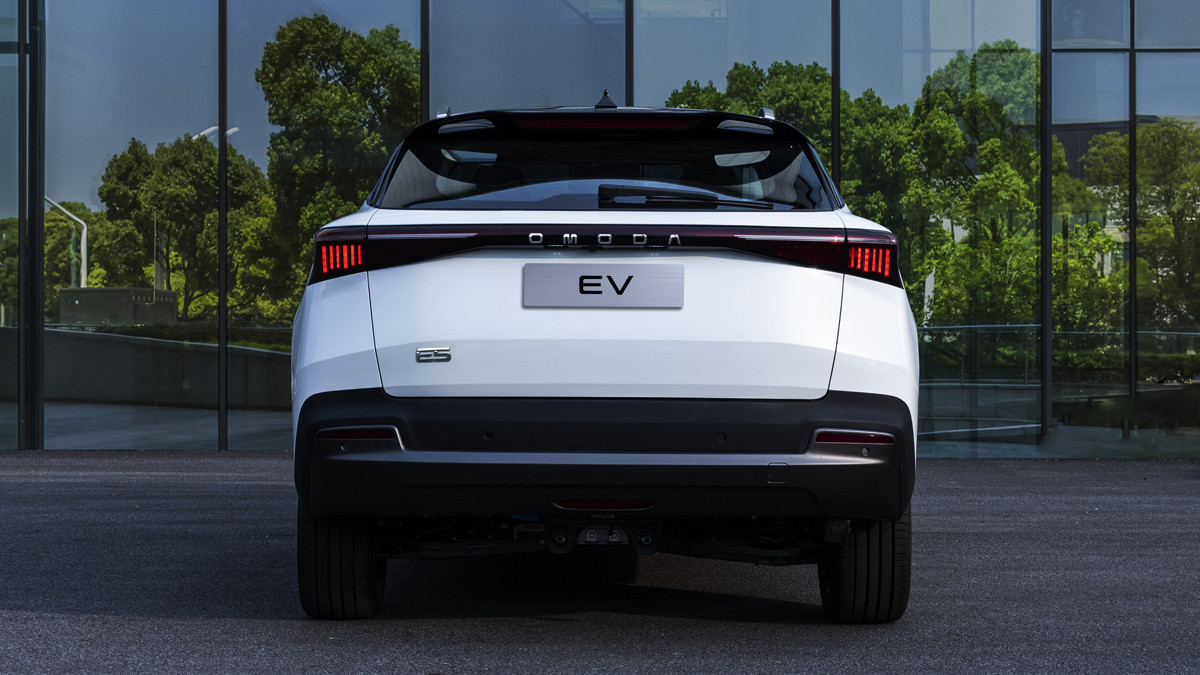 Экстерьер «электрички» визуально ощутимо отличается от версий с ДВС. У Omoda E5 головная оптика со светодиодными полосками ходовых огней оформлена подобным образом, но на месте радиаторной решётки находится большая заглушка, визуально напоминающая крупный широкий «икс». Логотип бренда в виде названия располагается на дополнительной планке между фарами. В нижнюю часть переднего бампера интегрирован воздухозаборник с узором в виде вертикальных полос. Ещё у электрокроссовера Omoda E5 чёрные стойки крыши и такого же цвета «парящий» верх, а оформление кормы отличается только за счёт отсутствия патрубков выхлопной системы.