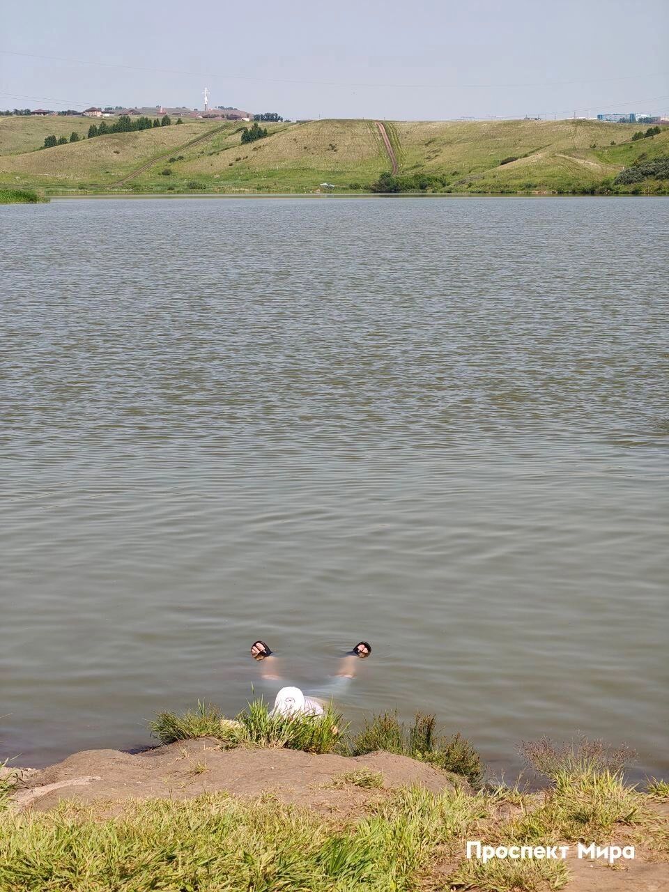 При этом люди купаются прямо под запрещенными знаками — как взрослые, так и дети. Таблички стоят у воды, но это не помогает — официальный пляж в городе всего один, а на улице — пекло.