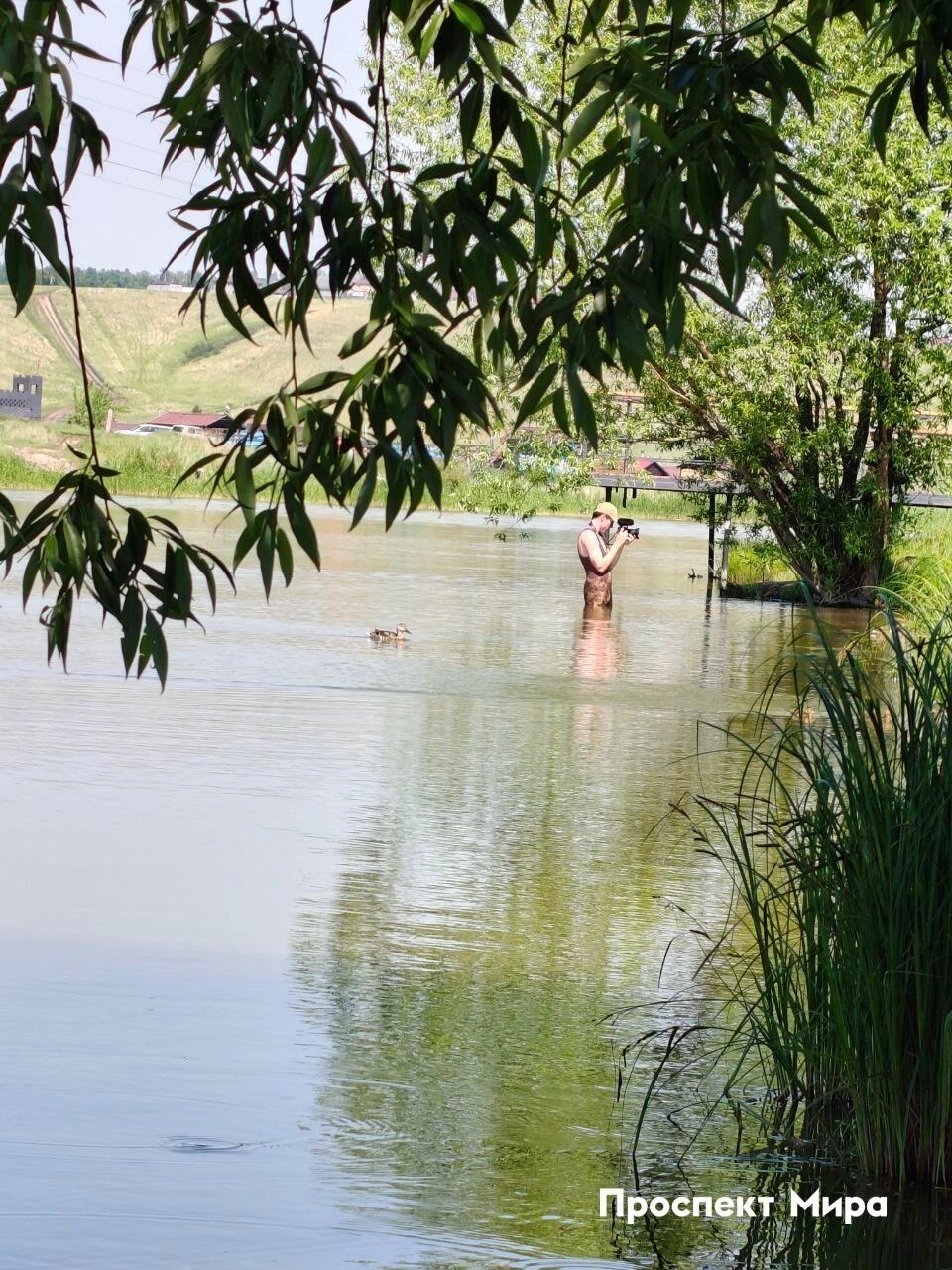 Гораздо больше людей, чем на набережной, можно встретить прямо у воды. Например, такая обстановка сегодня в озеро-парке «Октябрьский».