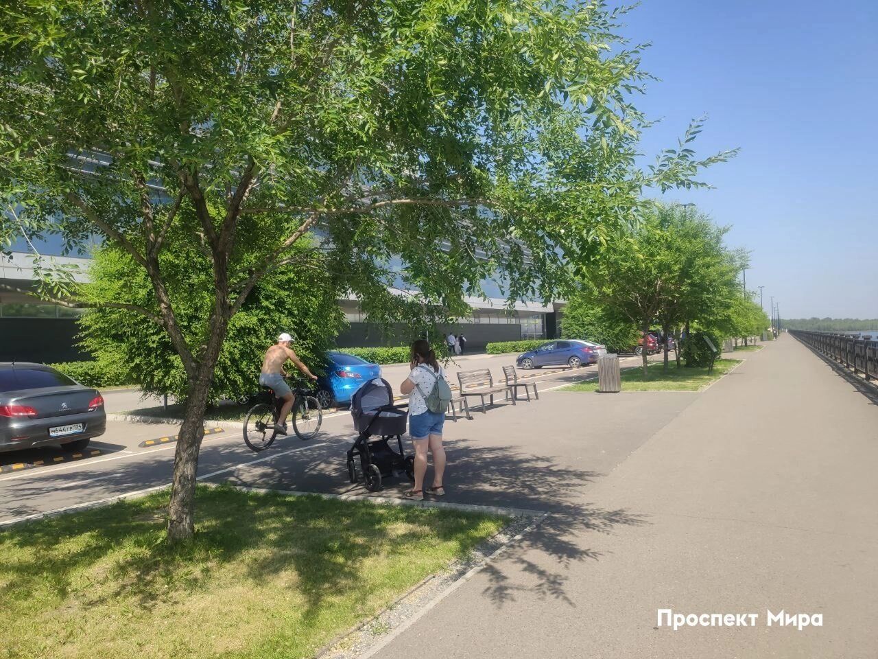 По наблюдениям корреспондента «ПМ», на Центральной набережной было довольно мало людей — он заметил мамочек с колясками, которые прятались в тени, полураздетых самокатчиков и велосипедистов.