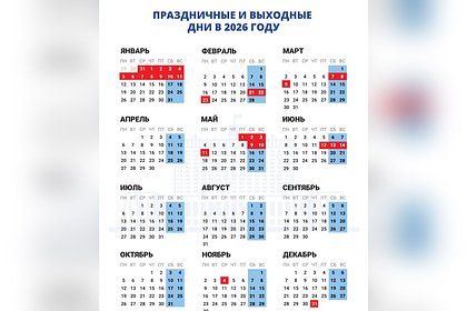 Премьер-министр России Михаил Мишустин утвердил календарь праздничных и выходных дней в 2026 году. Соответствующее постановление опубликовано на официальном портале правовой информации.