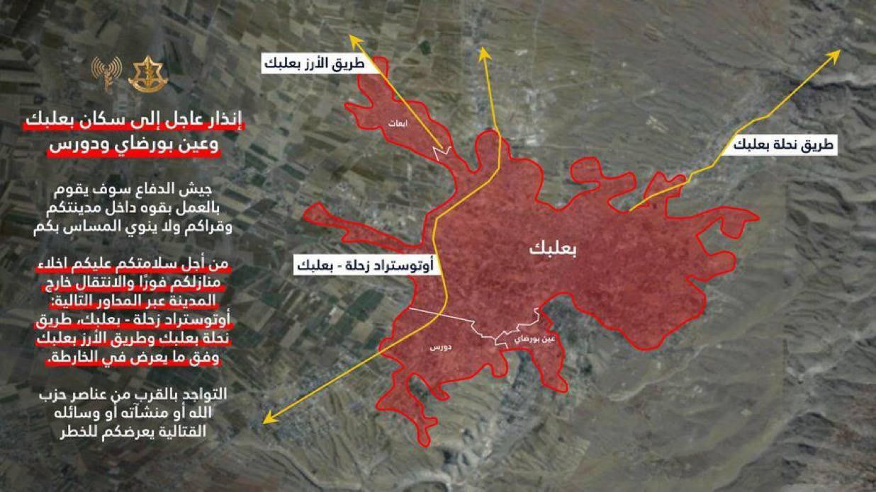 ❗️Армия обороны Израиля приказала жителям ливанского Баальбека, расположенного в долине Бекаа в Ливане, срочно покинуть свои дома и только по предложенным маршрутам.
