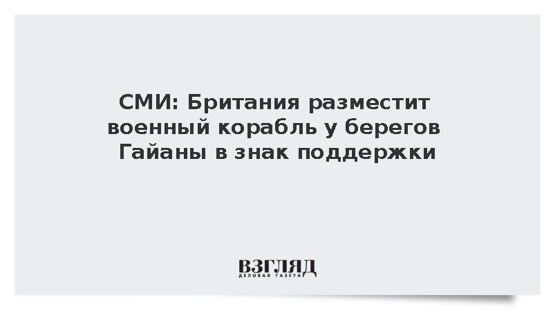 Великобритания разместит у берегов Гайаны патрульный корабль в знак поддержки государства в территориальном споре вокруг Эссекибо, сообщает газета Financial Times.