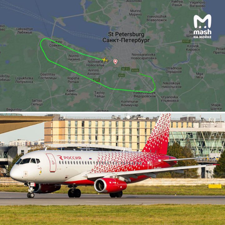 Борт из Петербурга в Калининград экстренно вернулся в Пулково — при наборе высоты "суперджета" сработала индикация системы пожарной сигнализации.