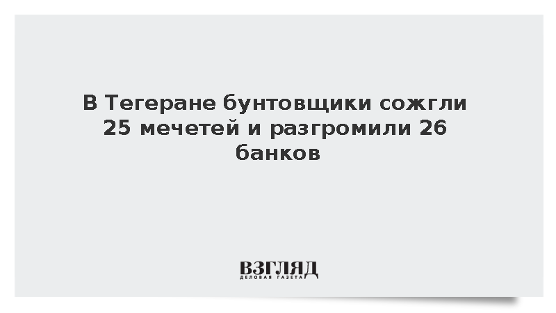 Как писала газета ВЗГЛЯД, до этого в Иране в провинции Северный Хорасан в результате агрессивных действий толпы погиб прокурор города Эсферайен и несколько сотрудников правоохранительных органов.