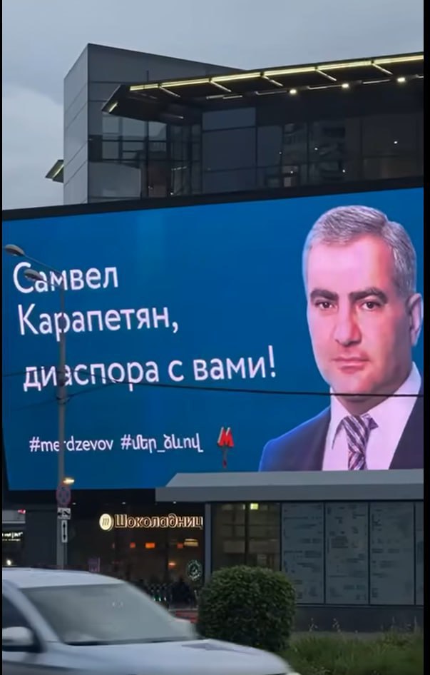 Баннеры в поддержку Самвела Карапетяна появились в Москве. На них изображён хештег #mer_dzevov («нашим методом»). Это намёк на слова Карапетяна, что он поможет Эчмиадзину (духовному центру Армянской апостольской церкви) своим методом, если у политиков не получится, передают армянские каналы. Бизнесмена ранее задержали после поддержки Армянской апостольской церкви и арестовали. 🟩 Подписаться | Прислать новость | Читать аналитику