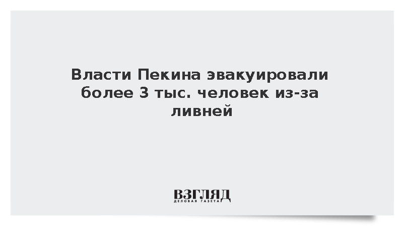Власти Пекина организовали срочную эвакуацию более 3 тыс. жителей района Миюнь после сильных ливней, передает ТАСС. Дожди обрушились на север столицы в ночные часы, вызвав наводнения и сбои в электроснабжении.