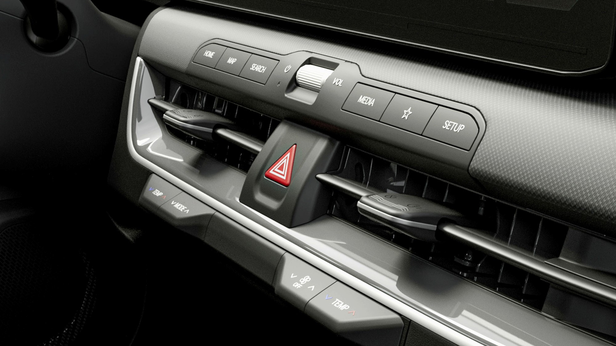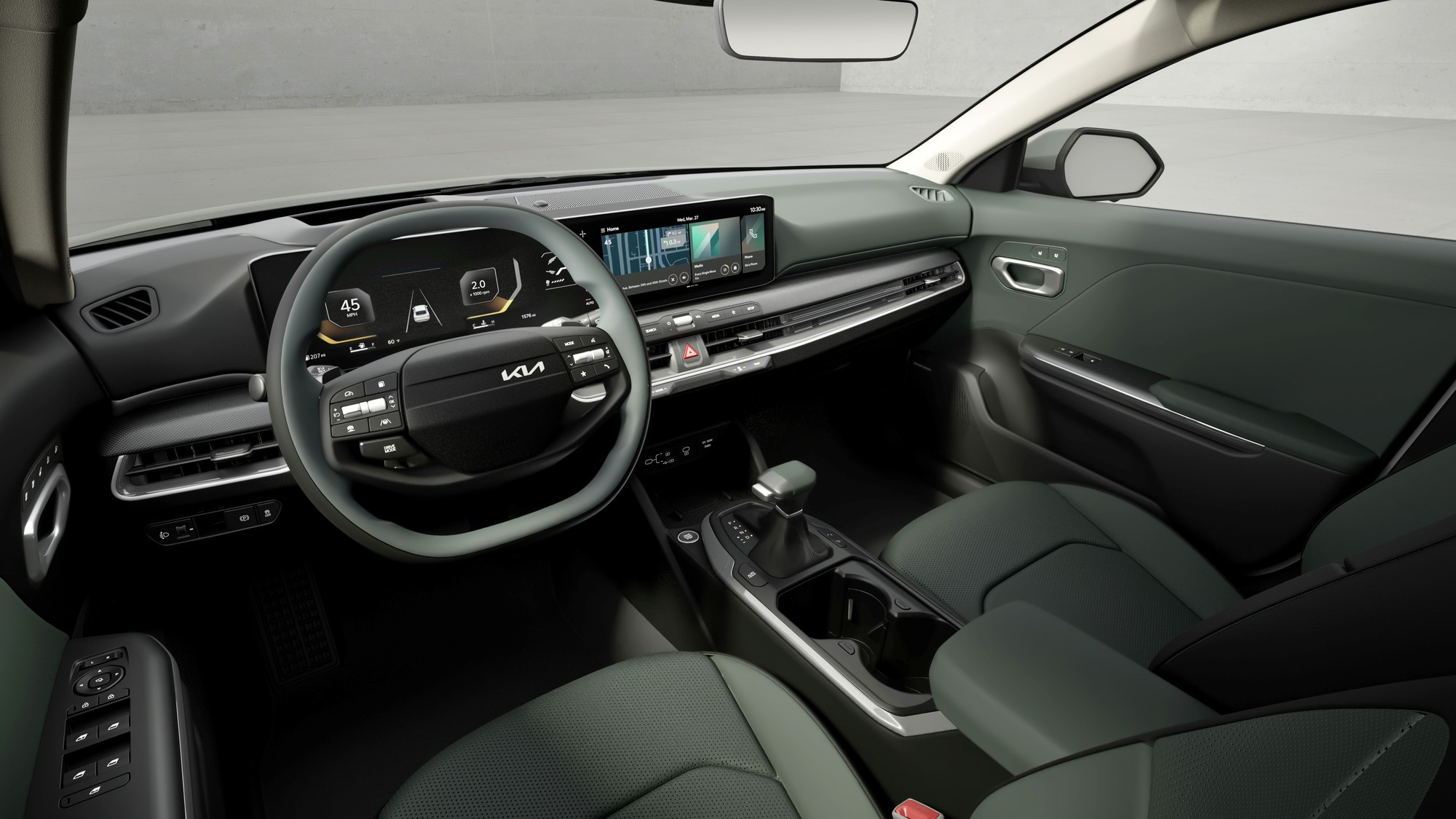 Салон Kia K5 по современным меркам выглядит несколько консервативно благодаря обилию физических кнопок — даже быстрый доступ к основным разделам мультимедийной системы и основные климатические настройки реализованы через физические клавиши под сенсорным экраном. Собственно, других сенсоров в салоне нет. Селектор АКП — это традиционный массивный рычаг на центральном тоннеле с фиксированными положениями. В общем, с точки зрения эргономики салон очень приятный и правильный. Красочное табло на передней панели объединяет 12,3-дюймовые приборный и мультимедийный экраны, а между ними вклинился 5-дюймовый дисплей, заведующий микроклиматом. В «базе» руль двухспицевый, у версии GT-Line — трёхспицевый.
