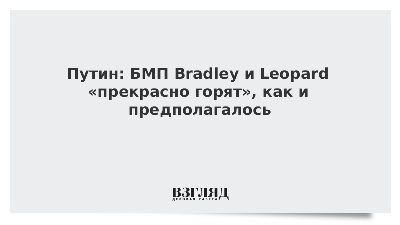 Боевые машины пехоты (БМП) Bradley и танки Leopard «прекрасно горят», как и предполагалось, заявил президент России Владимир Путин на встрече с военкорами.