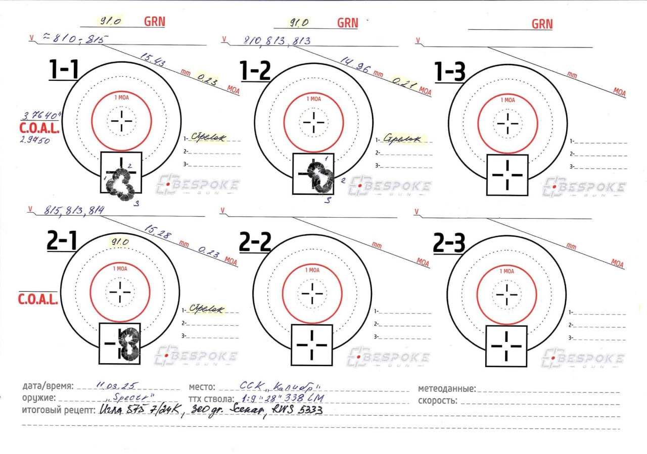 Мы производим отстрел всех винтовок на рабочих для калибра начальных скоростях, при этом всегда присутствует достаточный запас по их увеличению.