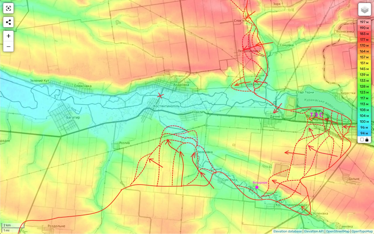Для этого севернее реки Волчья идет штурм Петропавловки, а чуть южнее попытки пройти на Андреевку через н.п. Шевченко (также занятый нами накануне). А еще продолжается наша перегруппировка южнее реки, грозящая окончательным перерезанием пуповины, через которую части ВСУ еще способны (пусть и с потерями) выйти из образовавшегося здесь кармана.