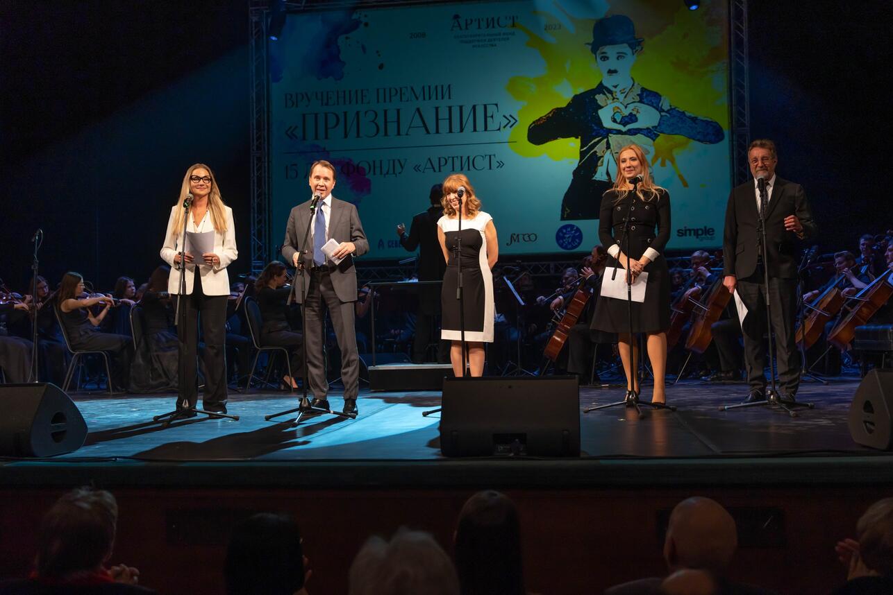 Премия «Признание», которую вручает заслуженным деятелям культуры благотворительный Фонд «Артист», в этом году стала юбилейной — десятой, фонду же исполнилось 15 лет. На сцене РАМТа, где проходила церемония награждения, Евгений Миронов и Мария Миронова появились вместе с другими учредителями фонда — Леонидом Ярмольником, Натальей Шагинян-Нидэм и директором Ольгой Каталиной.