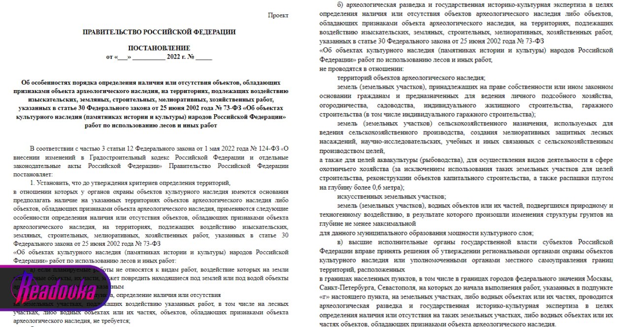 Представители научного сообщества бьют тревогу. Речь идет о постановлениях правительства, которые касаются изменения механики проведения экспертиз перед строительством. Первый отменяет археологические разведки для выявления наличия или отсутствия культурного слоя памятников и позволяет строить на глубину до 0,5 м без предварительных археологических работ. Второй законопроект подразумевает передачу решения о выявлении археологических памятников и выделении денег на их изучение заказчикам строительных работ.