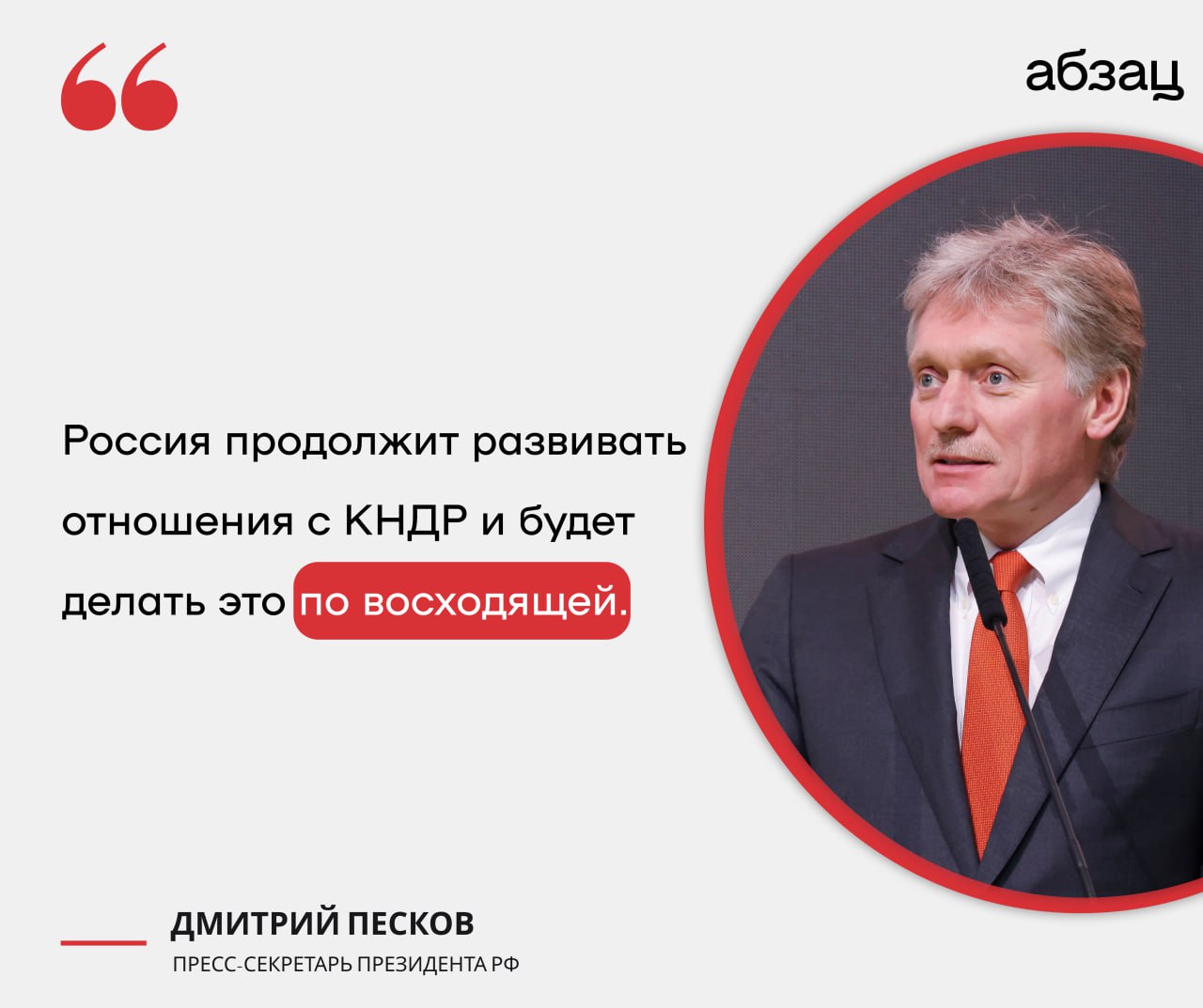 Песков: Россия продолжит развивать отношения с КНДР и будет делать это по восходящей