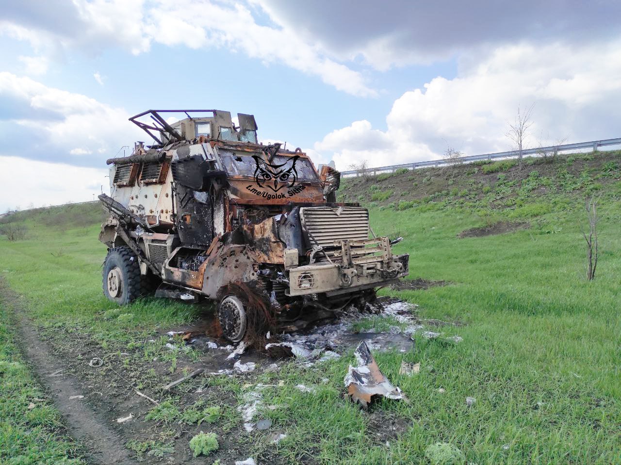 Уничтоженный International MaxxPro, брошенный ВСУ в районе Новогродовки.
